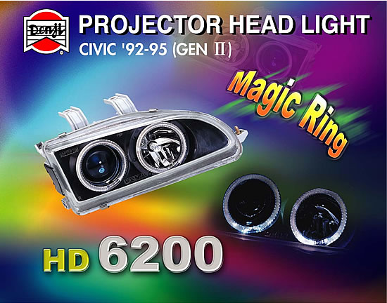 DJ-HD6200 CIVIC '92~95 GEN III w/Magic Rings Projector Head Light